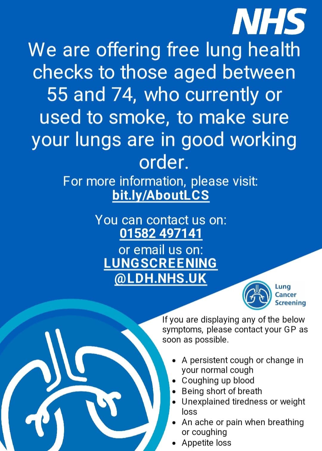 The NHS lung cancer screening service is now inviting residents of Bedford borough